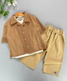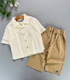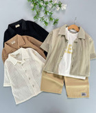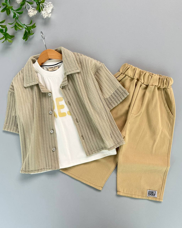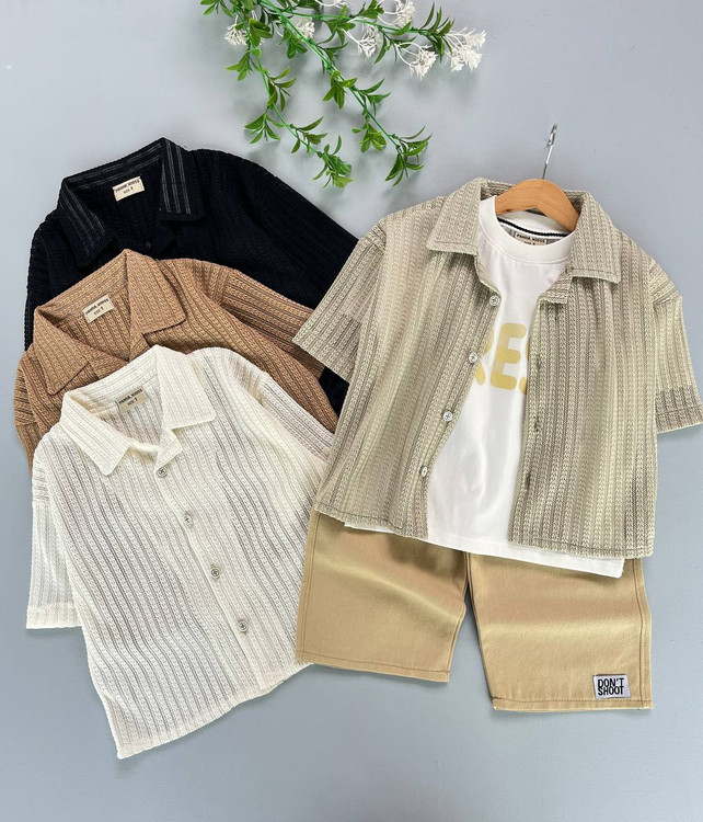 ست سه تیکه پسرانه پیراهن، تیشرت و شلوارک نخ پنبه درجه یک قواره دار