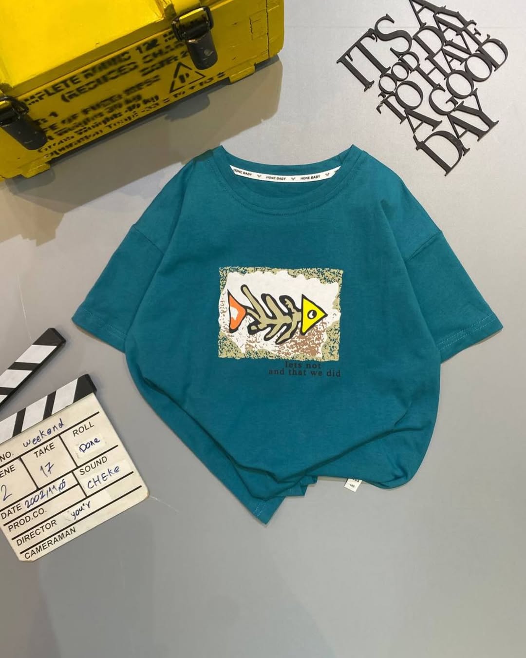 تیشرت پسرانه وارداتی نخ پنبه طرح ماهی